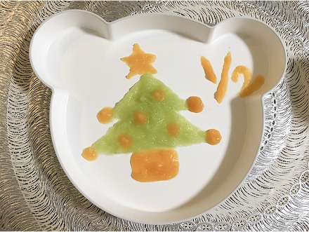 5~6カ月目になると離乳食が始まります。お祝いメニューも赤ちゃん用に離乳食で作ってあげましょう。まだ離乳食の赤ちゃんの食事はペーストが主流。でも、お皿に可愛く盛り付ければ、素敵なお祝いプレートの完成です。