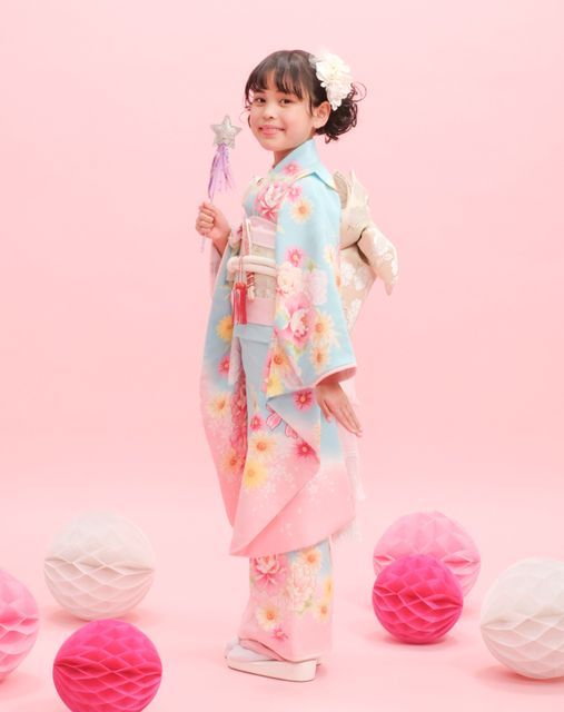 レトロ調の水色に大きな橘の柄がかわいいデザインです