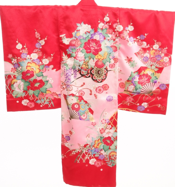 こちらメインは赤色で配色にピンクや中央に花車があり