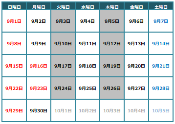 以下の日程は衣装見学、代金のお支払い等の対応ができません。